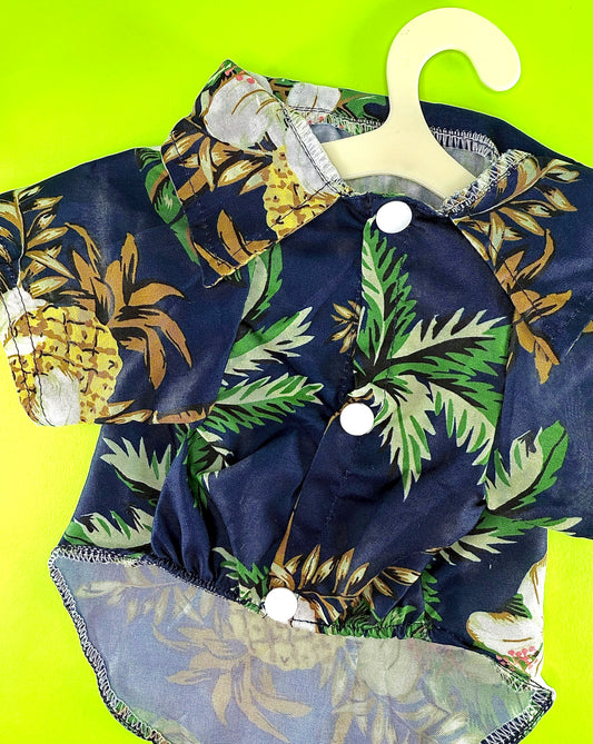 Tropical Button-Up Pet Shirt | Palm & Pineapple Print