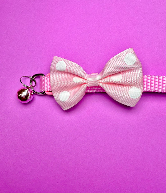 Pink Polka Dot Bow Pet Collar | With Bell