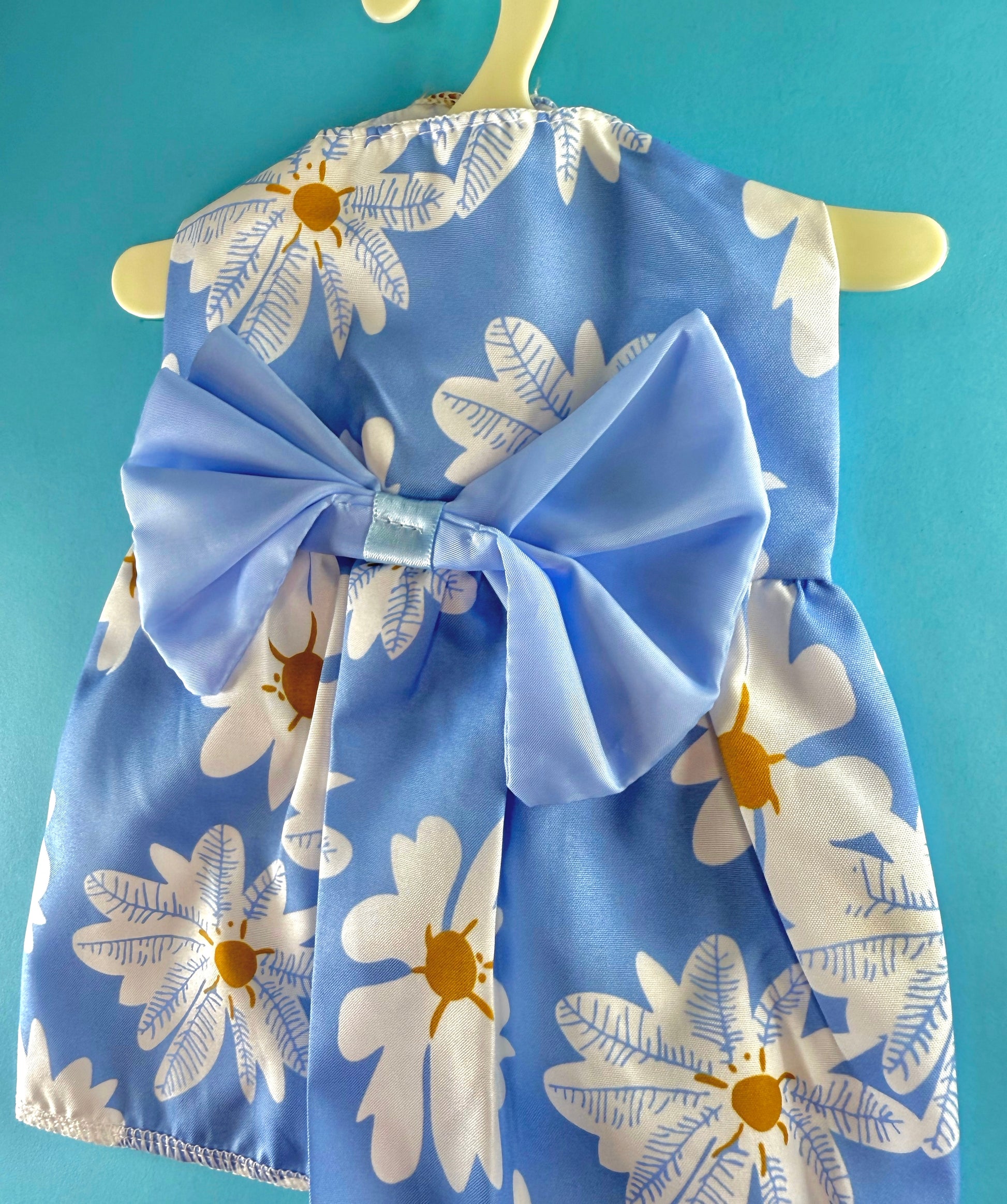 Blue Floral Bow Pet Dress | For Dogs & Cats